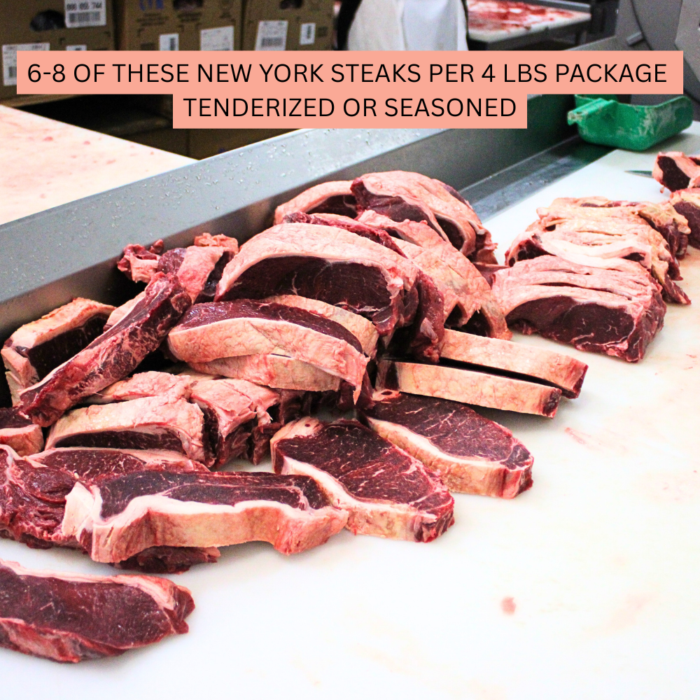 4 lbs Beef New York Steaks – your choice of tenderized or seasoned