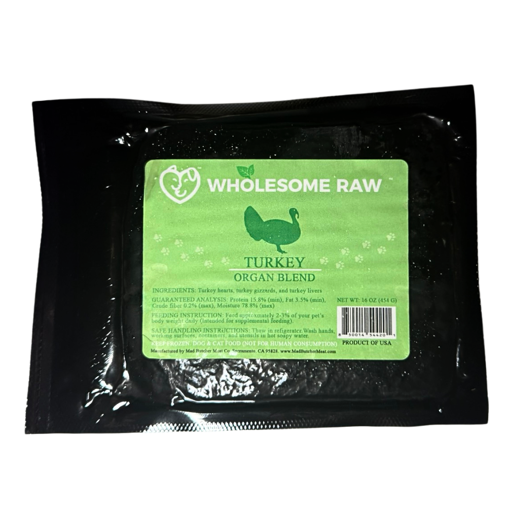 Our Turkey Organ Blend is a lean, nutrient-rich topper designed to enhance your dog’s diet with concentrated organ nutrition. Made with turkey hearts, gizzards, and livers, this blend is an excellent supplement to a balanced raw feeding plan, providing essential vitamins, minerals, and natural enzymes.